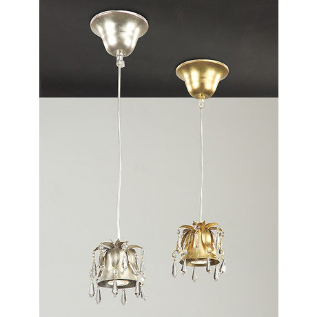 Подвесной светильник из металла серебряного цвета. Светильник выполнен в виде цветка с лепестками. Прозрачные подвески с кристаллами Swarovski на конце лепестков. Высоту светильника можно регулировать. Дизайн: Karen Lenz.